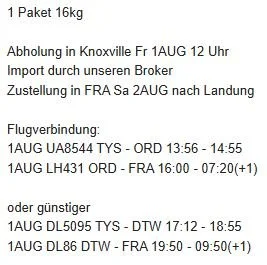 Inkl. Flugverbindungsdaten & genauen Abhol-/Anlieferzeiten