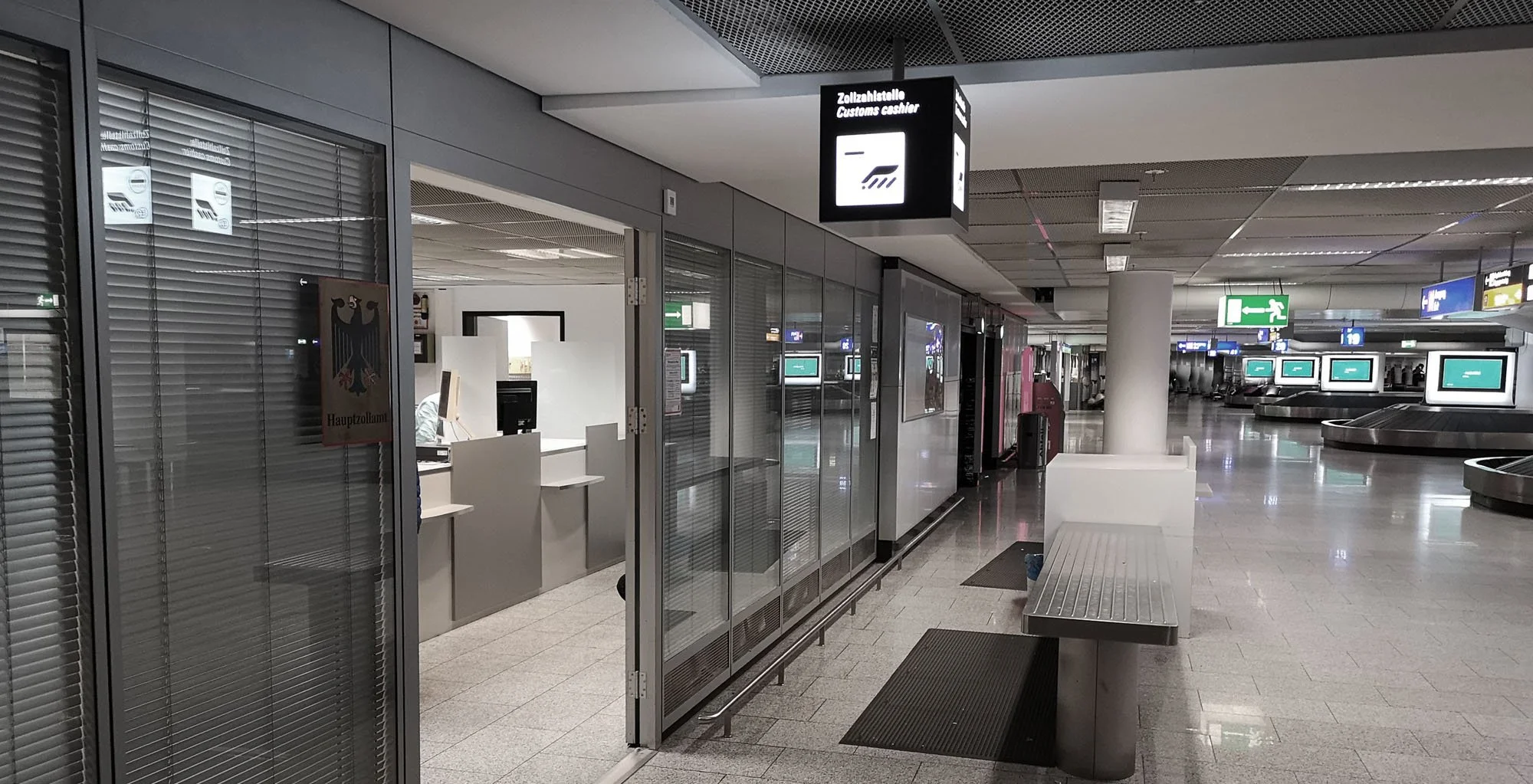 Wenn der Kurier die Ware übernommen hat folgt sein Check-In sowie ggf. der Exportzoll. Hierbei ist wichtig ob die Ware im Handgepäck mit dem Kurier in der Flugzeugkabine, oder aufgrund von Größe oder Gewicht als Aufgabegepäck fliegt. Grundsätzlich ist der Transport in der Kabine immer erste Wahl. In diesem Fall checkt der Kurier sich ein und nimmt die Ware durch die Sicherheitskontrolle mit Richtung Abflugsteig. Für Ausfuhren per Handgepäck befindet sich der Zoll an vielen Flughäfen hinter den Sicherheitskontrollen und kann ohne Probleme vor dem Abflug bearbeitet werden.